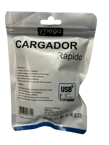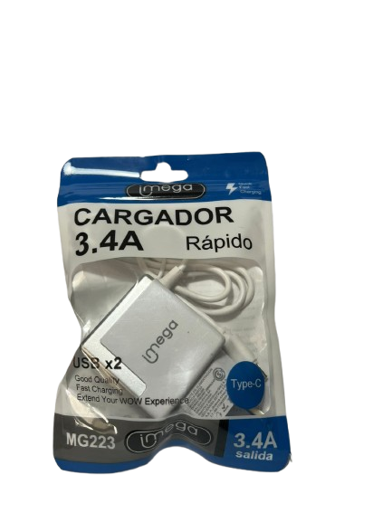 El cabezal Imega Premium combina potencia y practicidad en un solo accesorio. Con doble salida USB de 2.4A, permite cargar dos dispositivos de forma rápida y segura. Incluye cable Tipo C, ideal para smartphones y tablets de última generación. Diseño compacto y resistente, perfecto para uso diario.