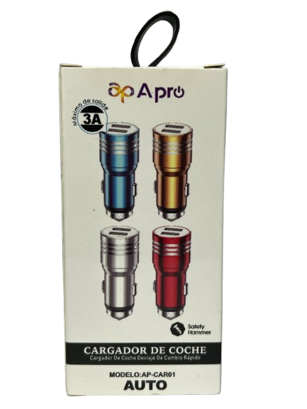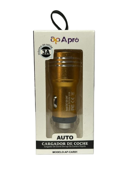 Elegancia y potencia en un solo accesorio. El cargador de auto AP Pro cuenta con un diseño metálico premium, compacto y resistente, ideal para viajes y uso diario. Con doble salida USB, permite cargar dos dispositivos al mismo tiempo con rapidez y seguridad.